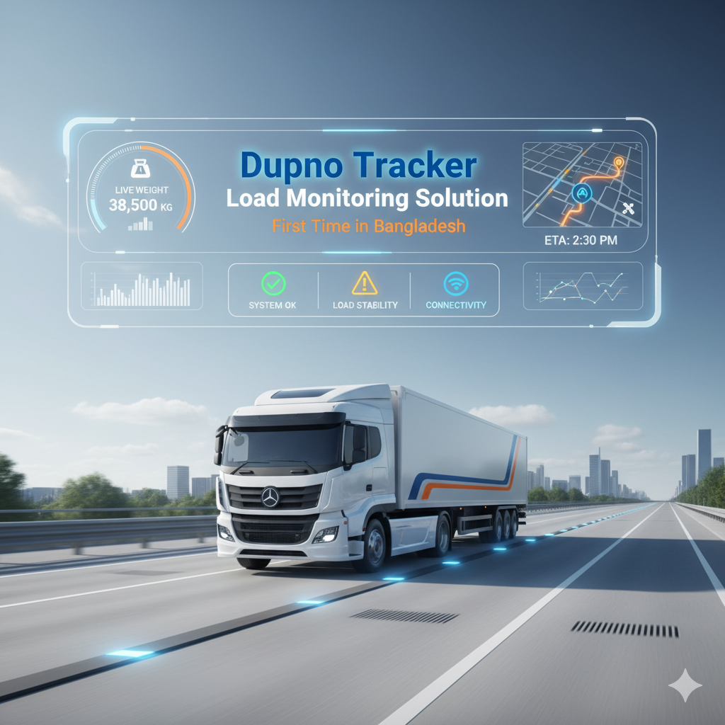 For the first time in Bangladesh, Dupno Tracker introduces a smart Vehicle Load Monitoring Solution that ensures trucks operate safely, maximize payload, and avoid overloading fines.